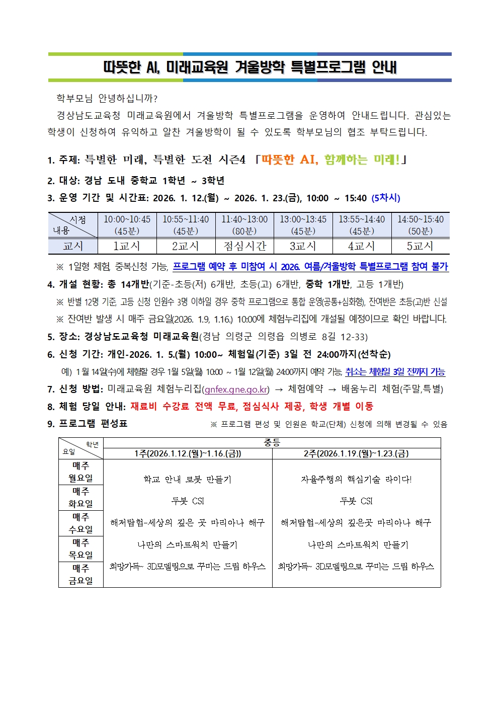 따뜻한 AI, 미래교육원 겨울방학 특별프로그램 안내